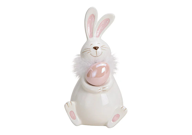 Coniglietto con uovo, ceramica bianca, rosa