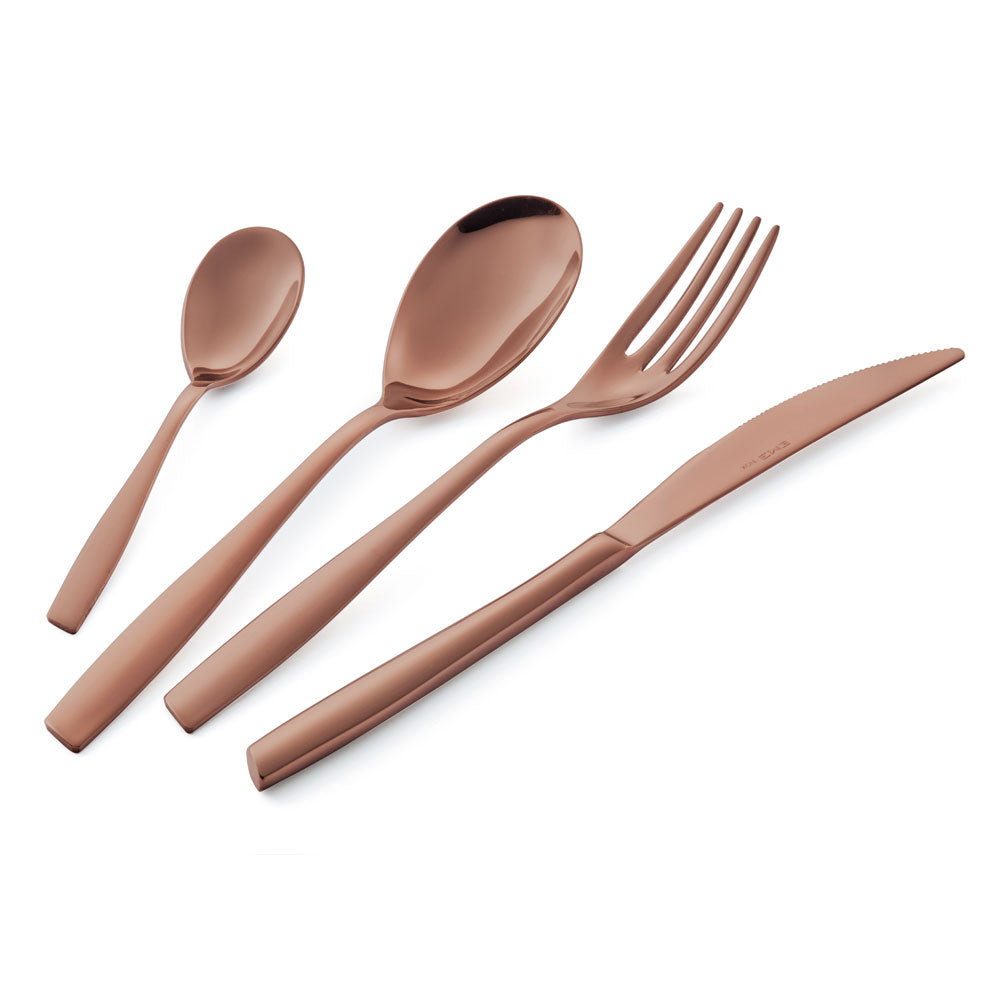 PVD è l’acronimo di Physical Vapor Deposition. È una tecnologia utilizzata per la colorazione dell'acciaio tramite deposizione di film metallici molto sottili. Il processo avviene all’interno di camere sottovuoto e consiste nell'evaporazione e successiva condensazione dei metalli sulle posate. Questo trattamento, con una gamma di meravigliose nuance di colore, oltre a impreziosire le posate, le rende più resistenti all'usura e ai graffi ed è un rivestimento perfettamente sostenibile e idoneo all'utilizzo nel settore alimentare.