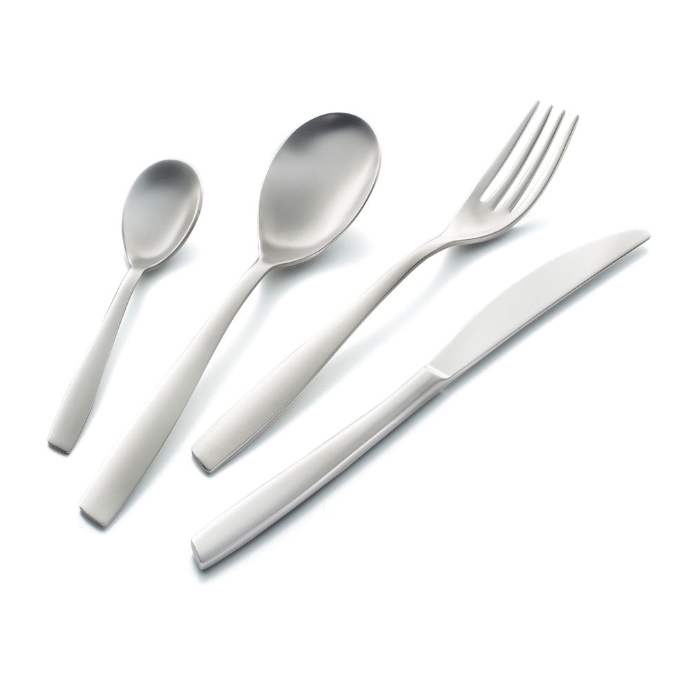 Eleven Sabbiato è una collezione di posate dal piacevole e vellutato effetto opaco. Particolarmente esclusiva ed elegante è adatta ad ambienti che richiedono originalità sulla propria tavola non solo nelle occasioni speciali ma anche nella quotidianità. Presenta linee dal design contemporaneo e di tendenza in modo particolare sono riconoscibili sulle morbide rotondità dei cucchiai. L'impugnatura è resa piacevole dai tratti armoniosi e dal taglio obliquo sulla parte terminale dei manici.