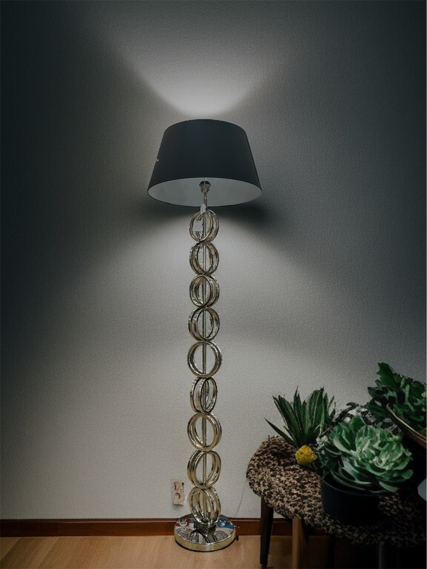 Diese handgefertigte Stehlampe ist ein wahres Schmuckstück, das jedem Raum eine besondere Eleganz verleiht. Sie verfügt über einen Stahlfuß und einen schwarzen Lampenschirm und wird mit einem Garantiezertifikat geliefert. Ihre Höhe beträgt 180 cm.
