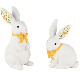 Hase mit Schleife, weiß/gelb, Polyresin, 7 x 7 x 15 cm
