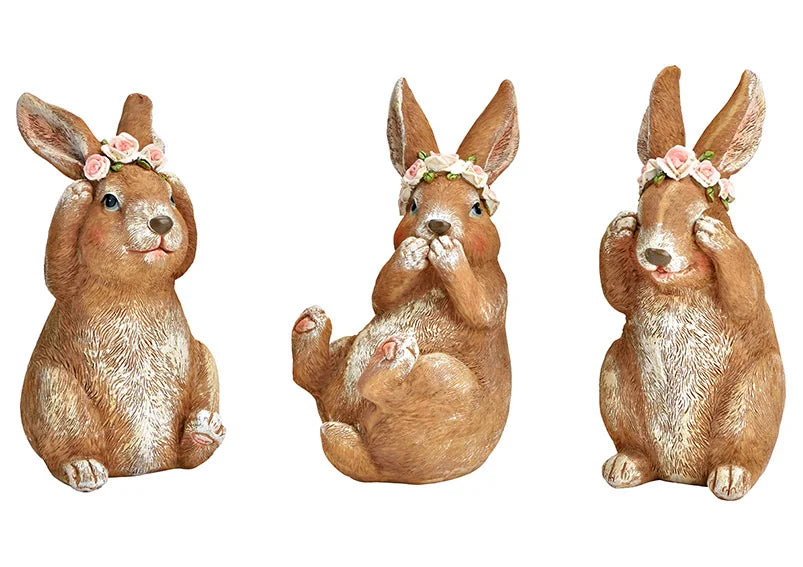 Hase mit Blumenkranz, nichts Böses sehen, nichts Böses hören, nichts Böses sagen, (L/A/D)