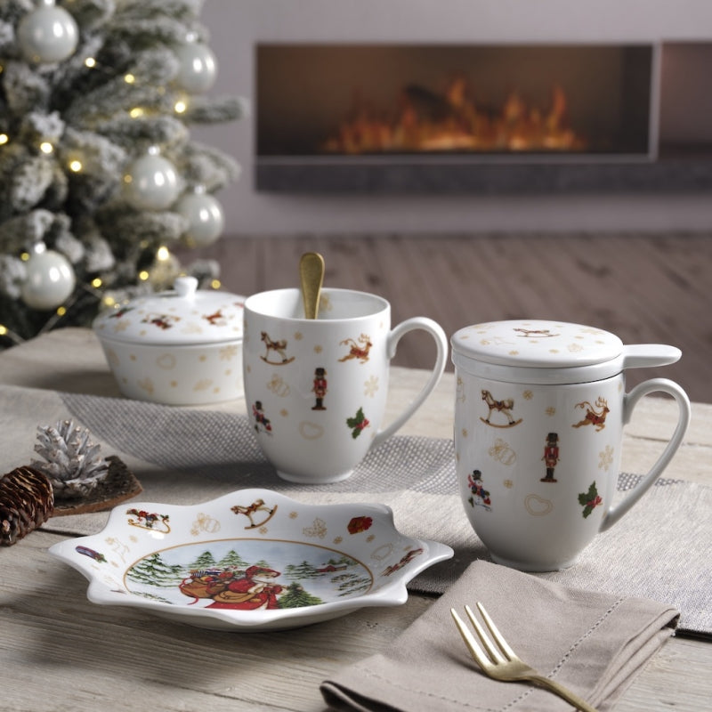 La tipica simbologia natalizia prende vita nell'originale decoro sottosmalto che impreziosisce la linea.
